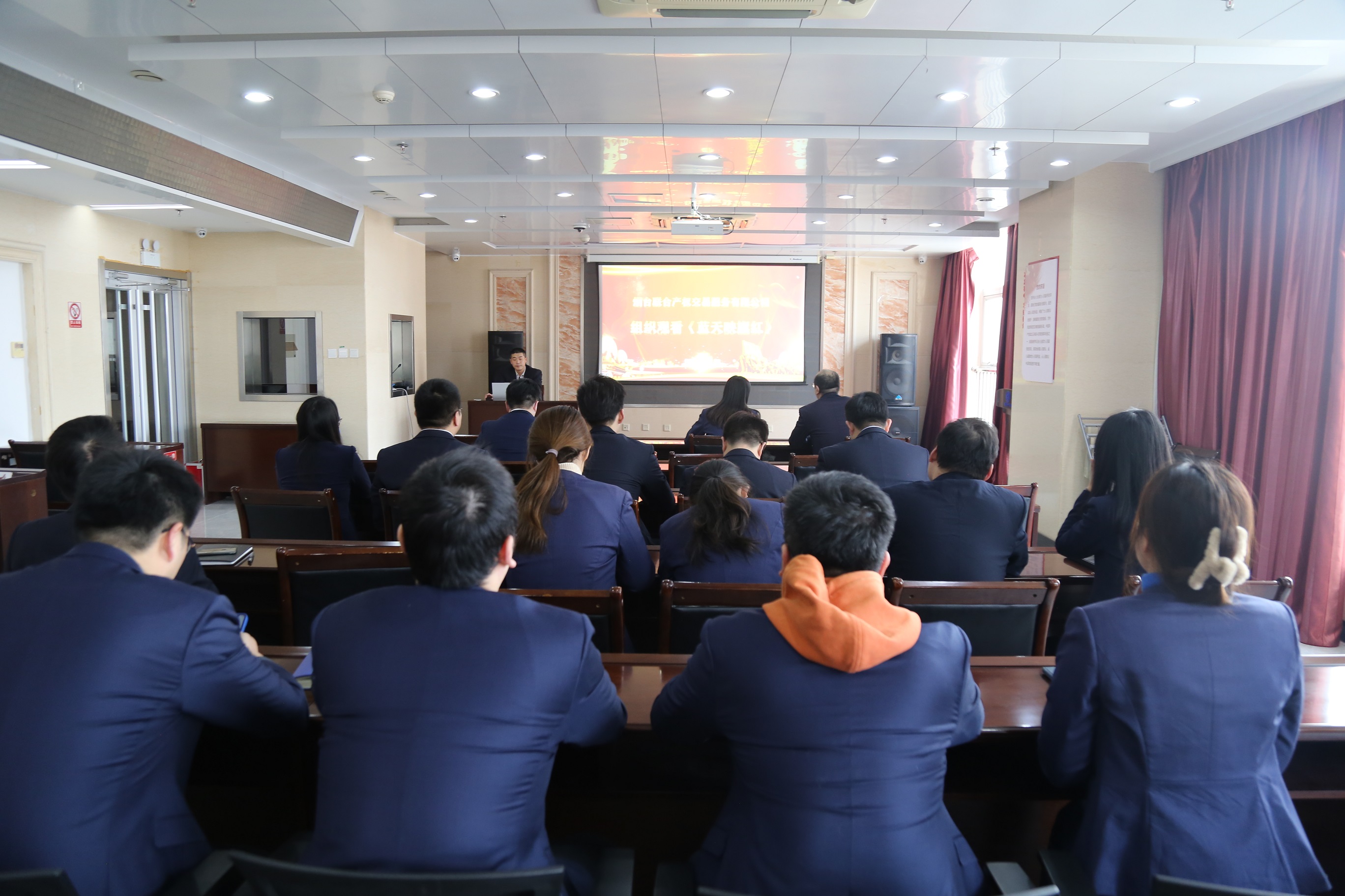 2月10日下午,聯(lián)合產(chǎn)權(quán)黨支部組織全體干部職工集中觀看《藍(lán)天映旗紅》電視片,集團(tuán)黨群部派人列席指導(dǎo)會(huì)議。
