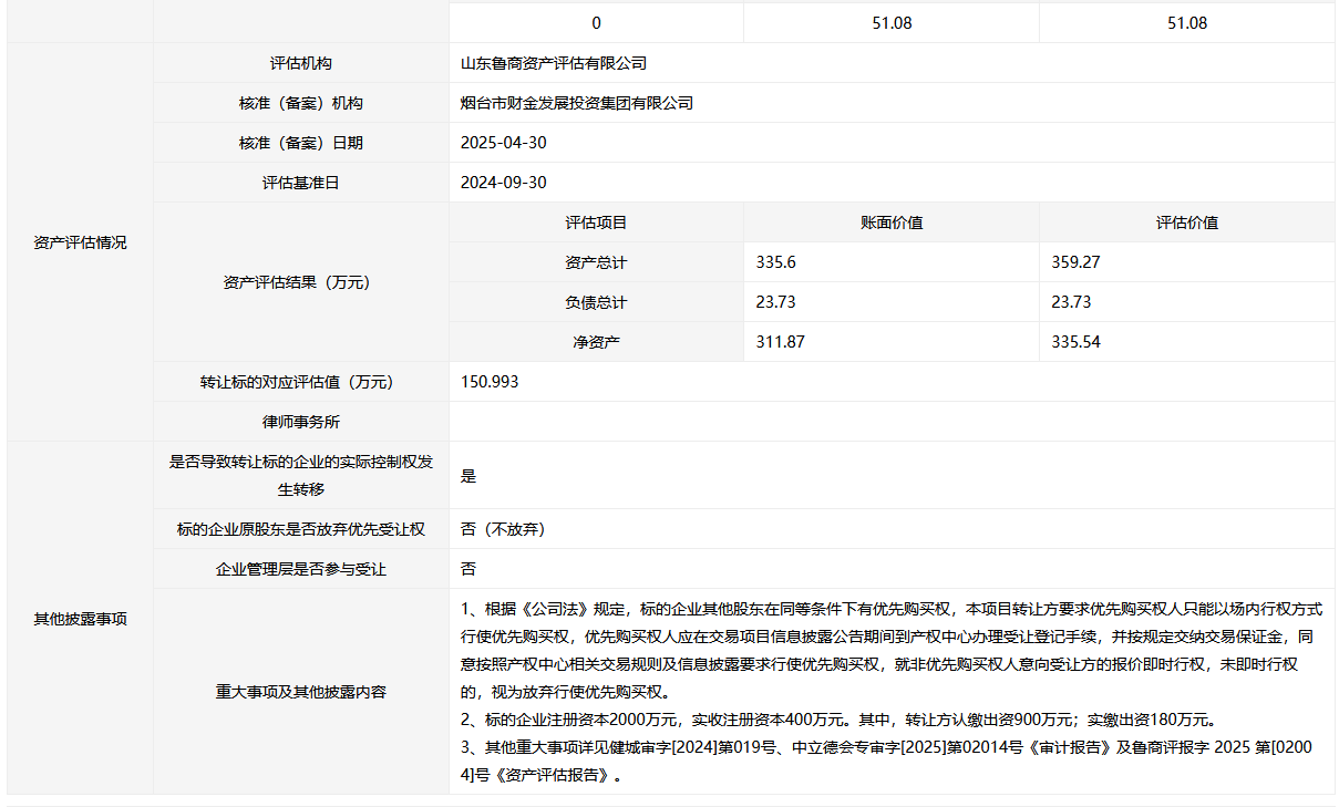轉(zhuǎn)讓方:煙臺市財金投資控股有限公司