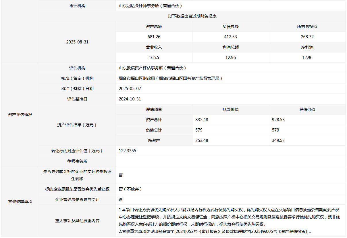 轉讓方: 煙臺市福山區(qū)財政局(煙臺市福山區(qū)國有資產監(jiān)督管理局)
