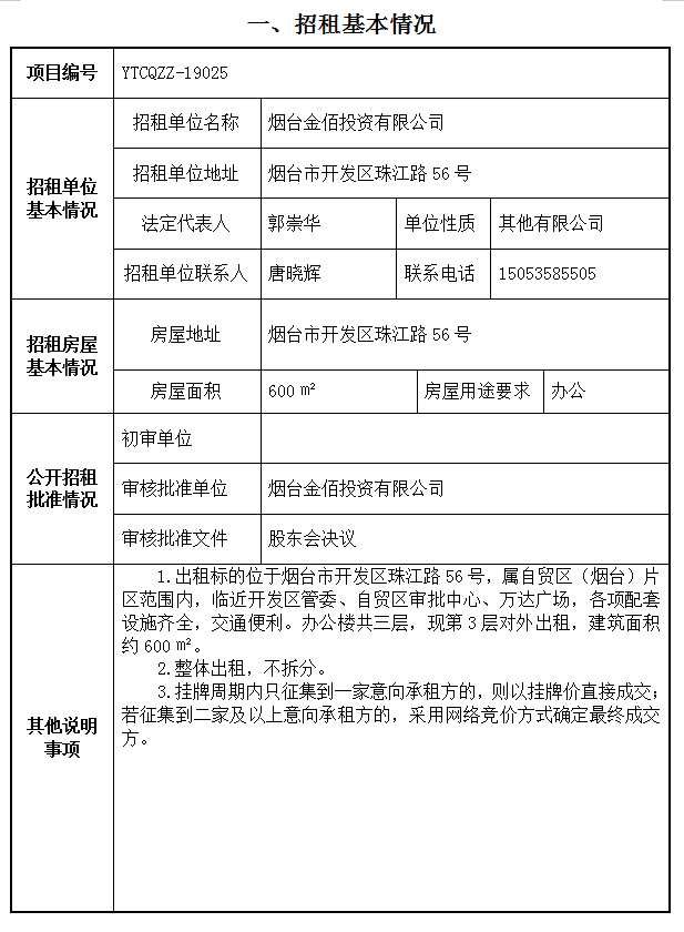 煙臺(tái)市開發(fā)區(qū)珠江路56號(hào)辦公樓第三層約600㎡租賃